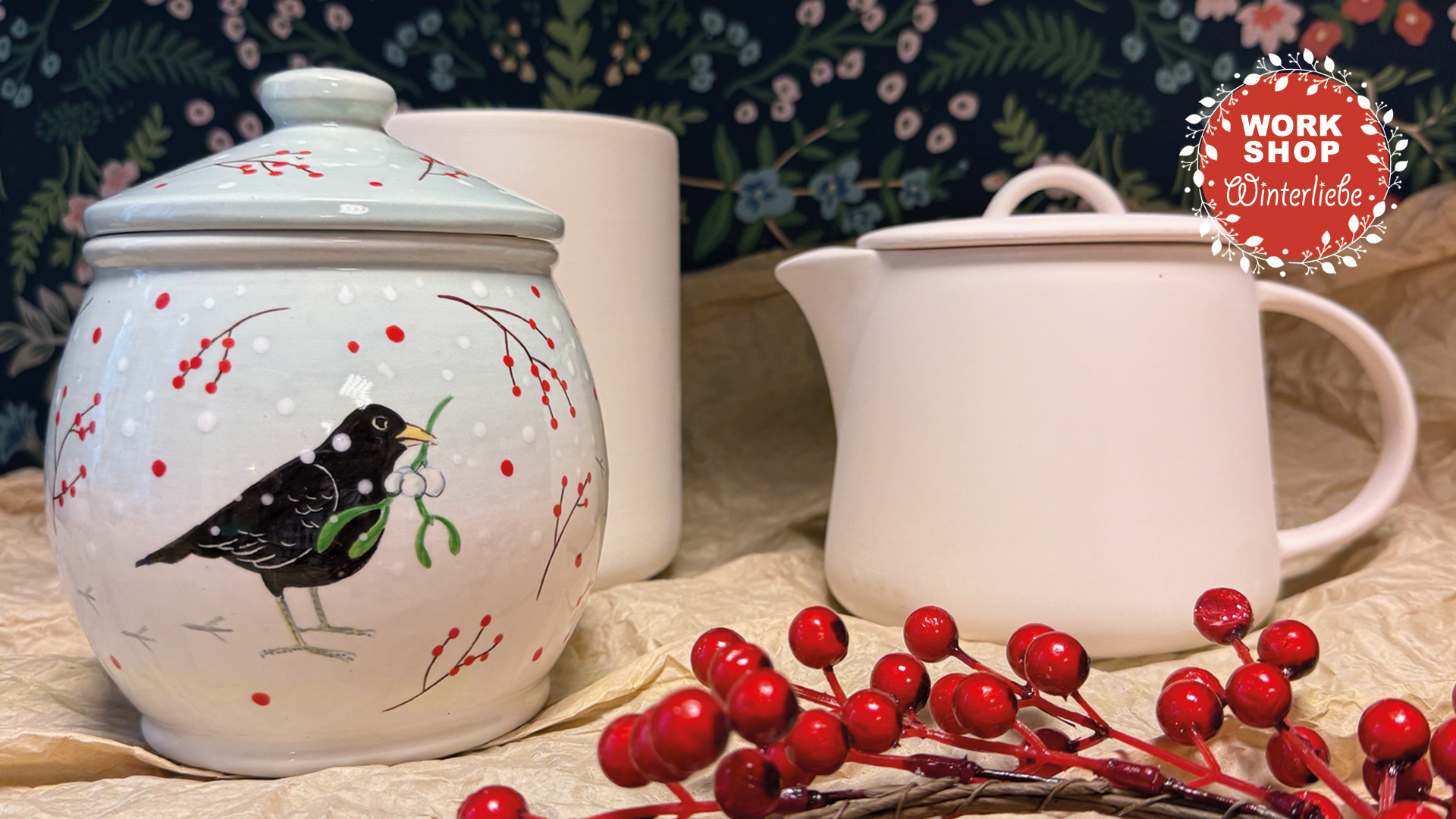 In kleiner Runde, Schritt für Schritt setzen wir mit euch unser Winteramsel-Motiv auf Keramik eurer Wahl um. Am Ende wird jeder, egal ob geübt oder ungeübt, stolz und glücklich über sein neues Lieblingsstück sein. Versprochen!